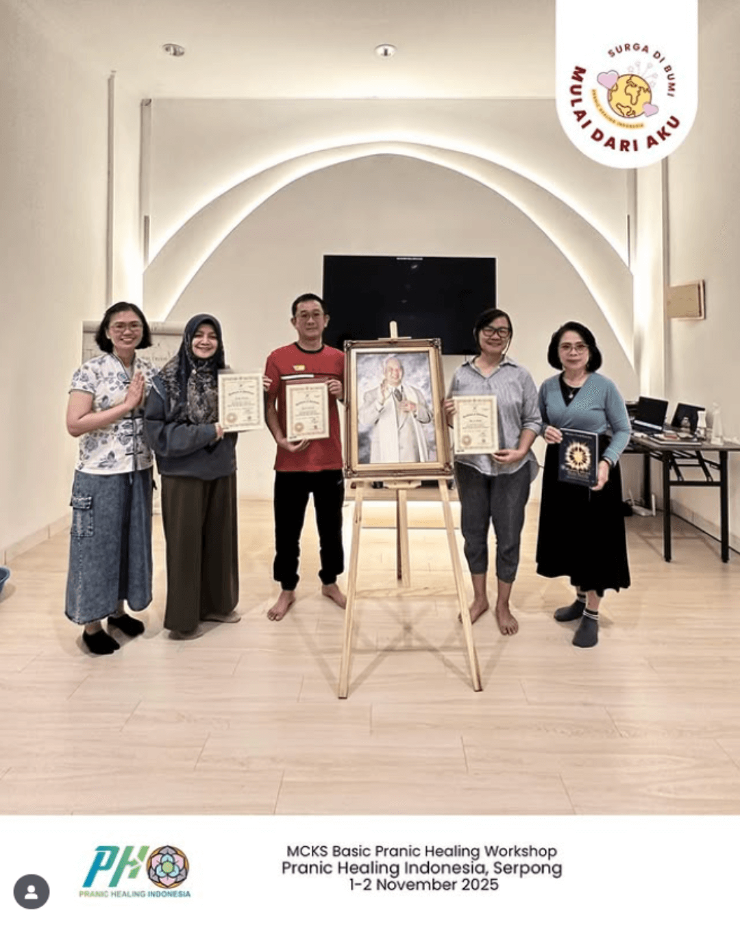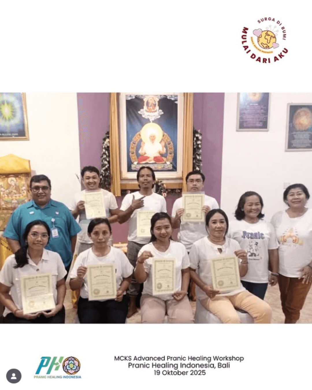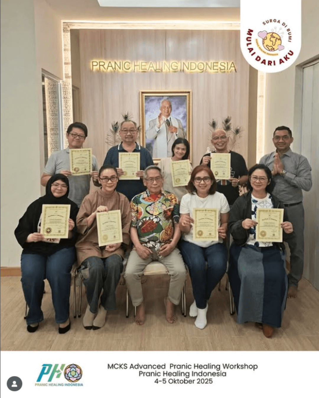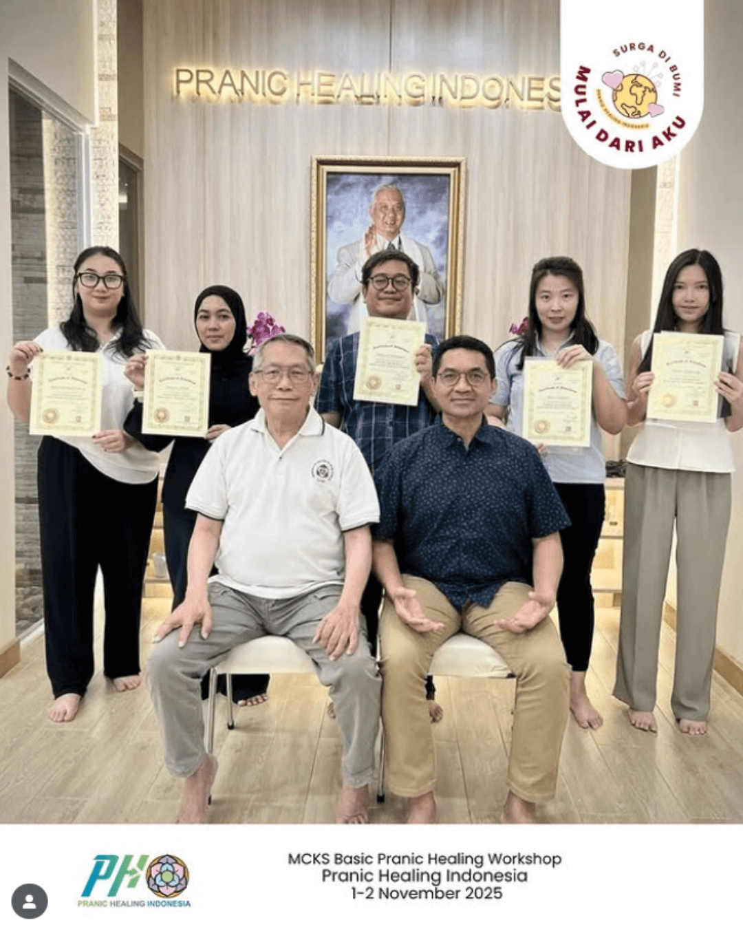 Sebagai pusat resmi pengajaran Pranic Healing di Indonesia, kami menyediakan pelatihan bersertifikasi — dari tingkat dasar hingga lanjutan — bagi individu maupun kelompok yang ingin memahami dan mempraktikkan penyembuhan energi. Melalui sesi penyelarasan prana, workshop, meditasi, dan berbagai kegiatan komunitas, peserta diajak untuk menyeimbangkan tubuh, pikiran, dan jiwa. Dengan metode yang terbukti dan sistematis, kami menciptakan lingkungan belajar yang ramah, suportif, dan terbuka untuk semua tingkat pengalaman. Kami percaya bahwa penyembuhan energi adalah pendekatan pelengkap yang valid untuk mencapai kesejahteraan holistik, sekaligus menjadi jalan menuju kesadaran dan keharmonisan hidup yang lebih dalam.